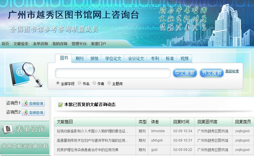 越秀区图书馆2017年4月加入全国图书馆参考咨询联盟,指定专门部门和专职工作人员全面开展联合参考咨询与文献传递服务,自4月19日到12月31日共回复23250项咨询,传递中文期刊论文15269篇、中文学位论文7344篇、中文会议论文435篇、中文报纸文章37篇、中文专利163篇、中文标准2篇。用了8个多月时间,做到在包括各省市级公共图书馆、高校图书馆和科技图书馆的全国图书馆参考咨询联盟360多家成员中排名2017年全年的第18位;专职工作人员在近600人的咨询馆员中排名第30位;大大提高了文献资源的利用率,取得了显著的社会效益,为开创全国公关、教育、科研三大系统图书馆文献资源共建共享的新局面,为我国的科技进步、文化繁荣做出了应有的贡献。