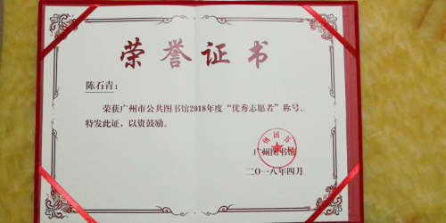 日前,由广州市委宣传部、广州市文广新局指导,广州图书馆、广州市图书馆学会阅读推广委员会、广州新华出版发行集团有限公司合办的“阅读新时代——第三届广州读书月发布会”在广州图书馆举行,公布了广州市公共图书馆2018年度“好读者、好伙伴、优秀志愿者”等奖项的评选结果。越秀区图书馆推荐的广州市古粤秀色本土文化宣传协会荣获“好伙伴”称号、志愿者陈石清荣获“优秀志愿者”称号。本次评奖共在全市评选出“好伙伴”5名、“优秀志愿者”10名等。