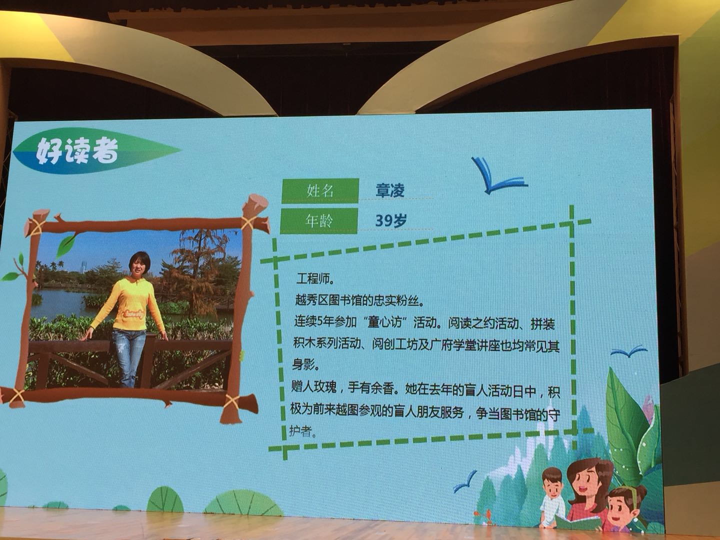 日前,越秀区图书馆接到喜讯:越秀区图书馆推荐的章凌女士,在“阅读新时代——第三届广州读书月”的广州市公共图书馆2018年度“好读者、好伙伴、优秀志愿者”等奖项评选中,荣获“好读者”称号。本次评奖共在全市评选出“好读者”10名等。