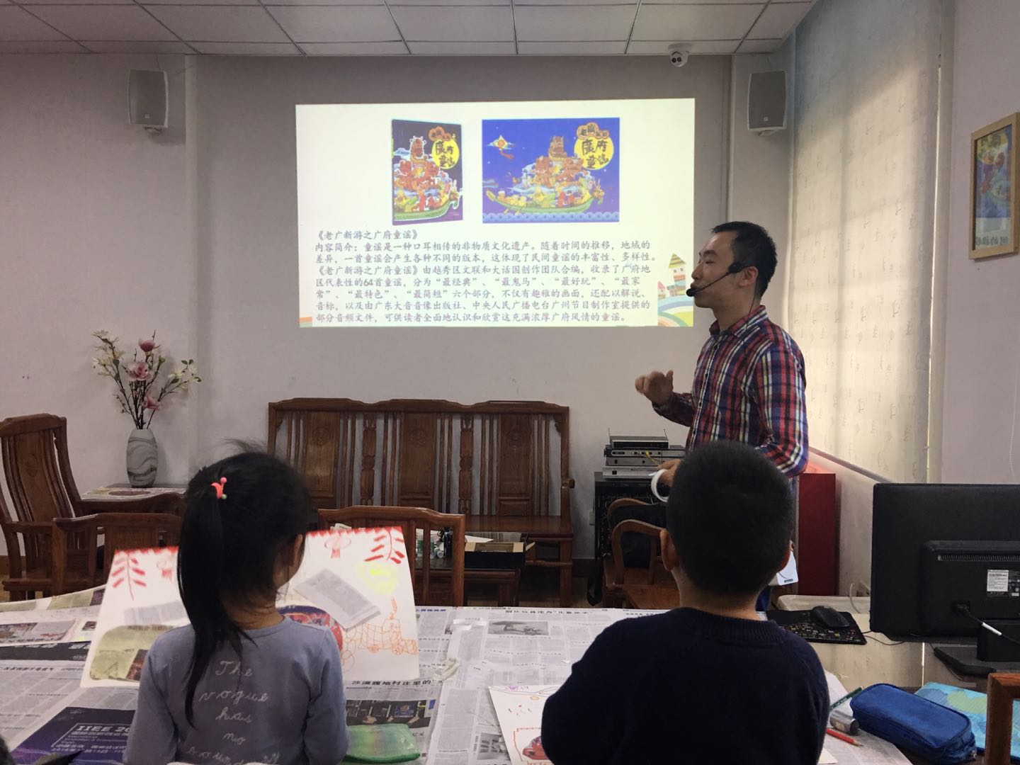 在活动即将结束之际,“月光光,照地堂,虾仔你乖乖瞓落床……”老师唱起了经典的广府童谣《月光光》,还向大家推荐了好书《老广新游之广府童谣》,让经典的广府童谣陪伴小读者们一起成长,让大家从小就沉浸在广府文化的熏陶中,长大后更好地传承和弘扬优秀传统文化。