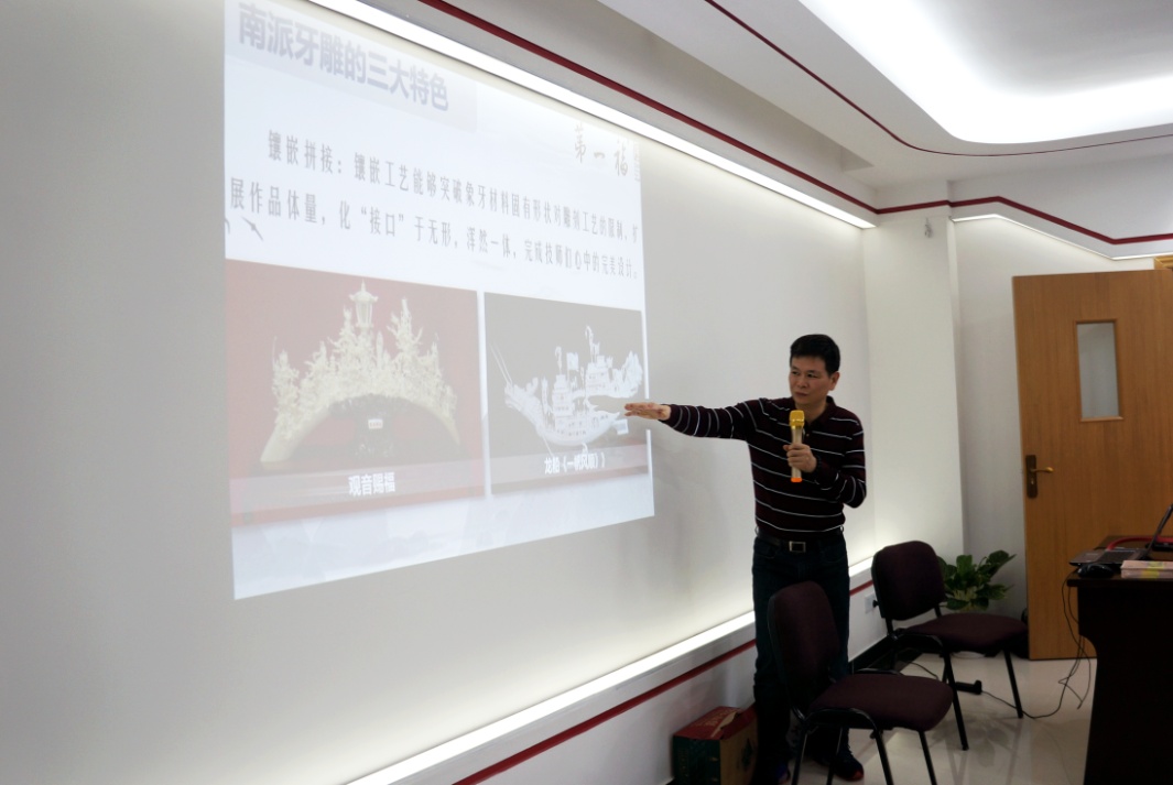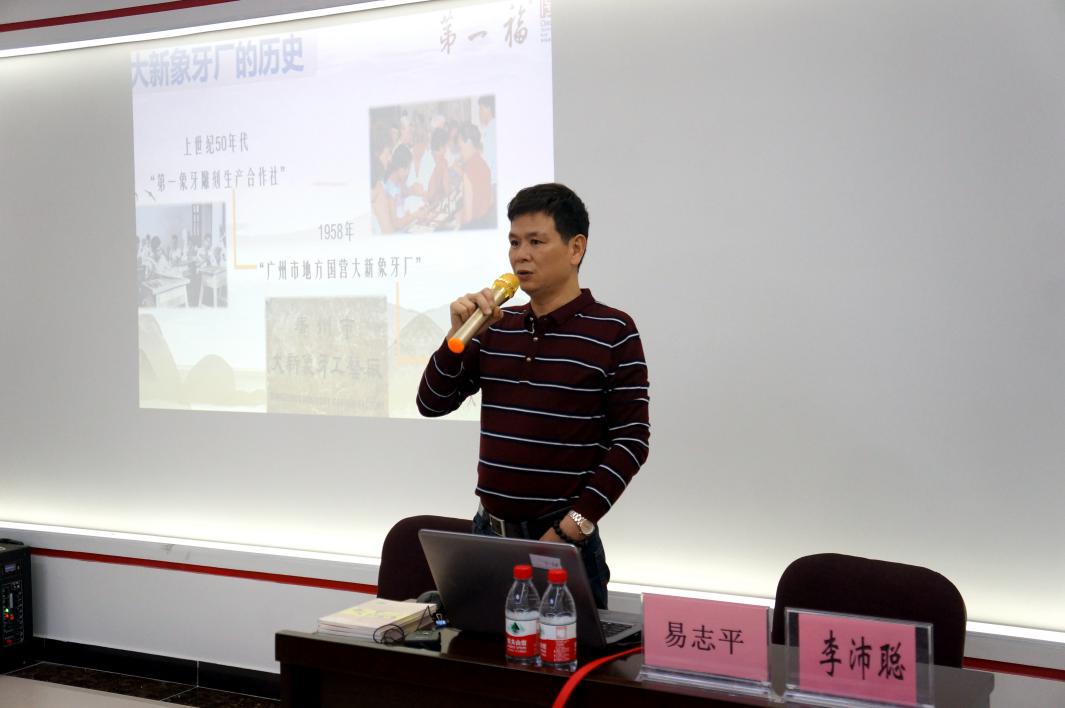讲座还邀请到工艺美术大师易志平先生前来为市民朋友介绍牙雕和工艺精湛的牙雕老字号企业——大新象牙厂的发展历史。