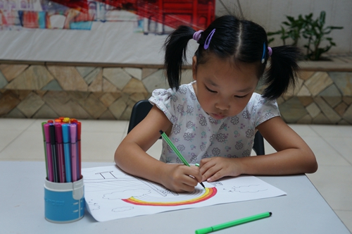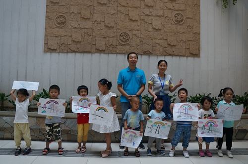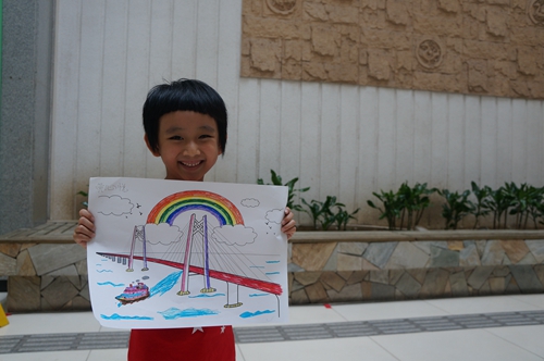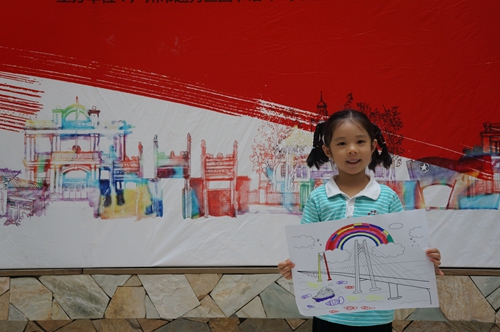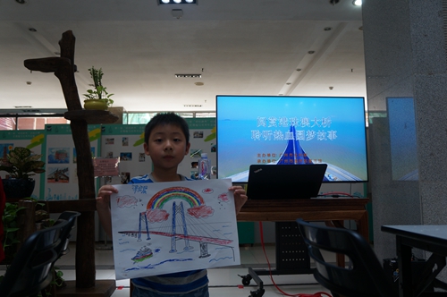 小读者们用画笔描绘心中最美的港珠澳大桥,完成作品的小读者都非常开心、快乐,露出了甜甜的笑容。