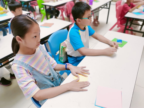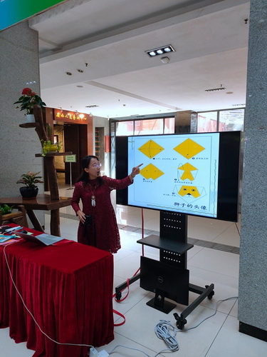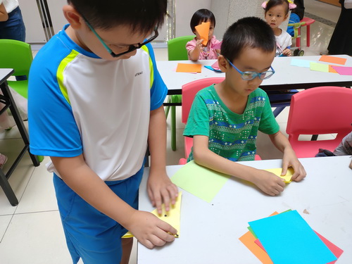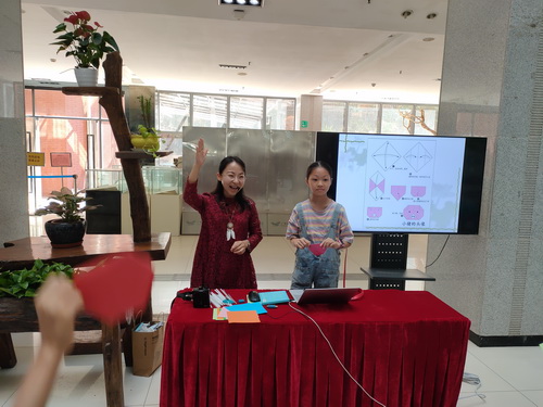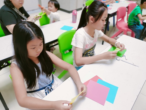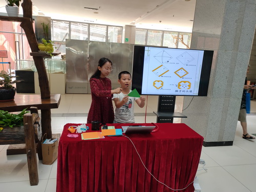 拿到自己心仪的折纸后,在老师的讲解下,小读者们紧跟老师的步伐,开始认真学习折纸的步骤,渐渐地小读者们对折纸有了一定的了解。