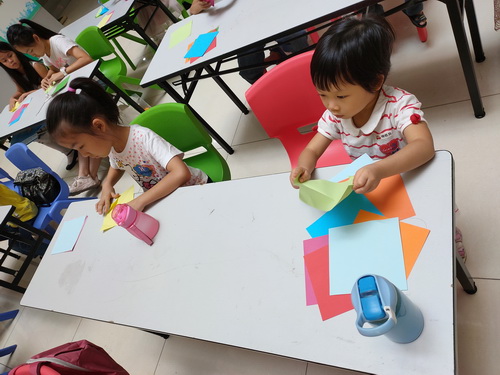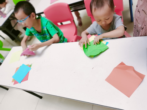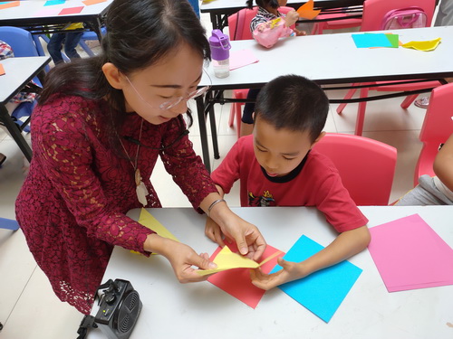 孩子们认真地学习折纸
