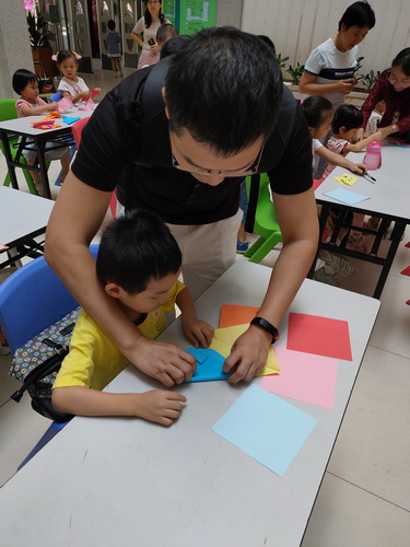 在折纸期间,老师对各位小读者进行悉心的指导。在老师和家长的协助下,小读者们也开始发挥自己的想象力,利用折纸材料创作自己喜欢的动物折纸。小螃蟹、小熊、小青蛙等,一幅幅折纸作品就在他们的巧手下诞生了。