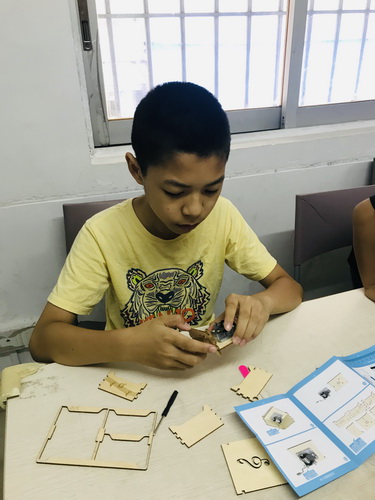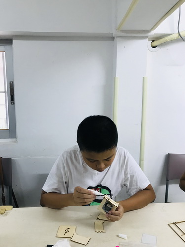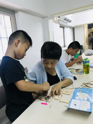 固定发声装置也不是一件简单的事情,它需要手眼协调以及精细动作的配合,力气小的孩子需要家长的进一步帮助,在过程中,十分考验孩子和家长的耐心。