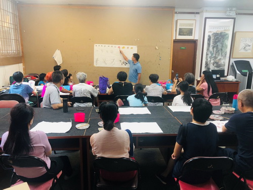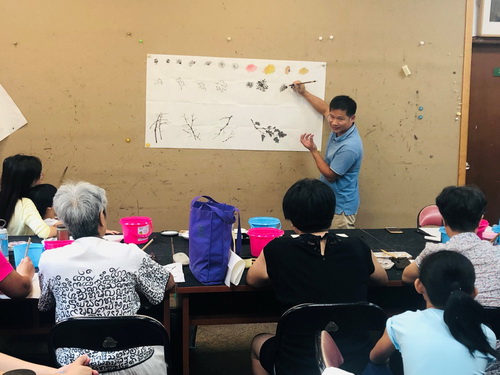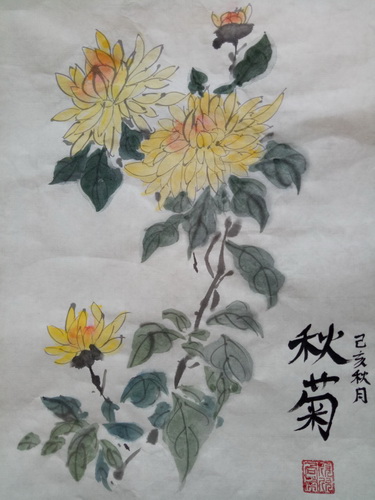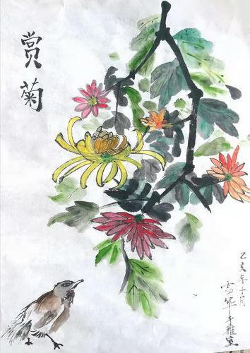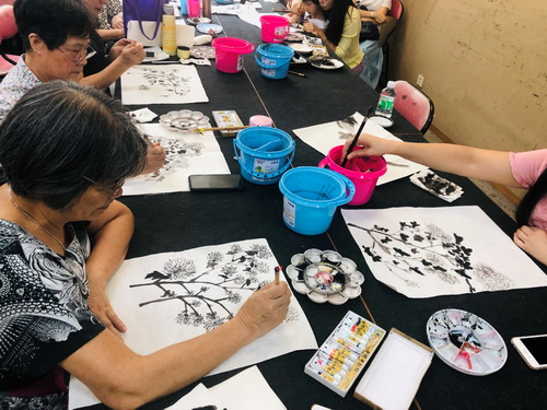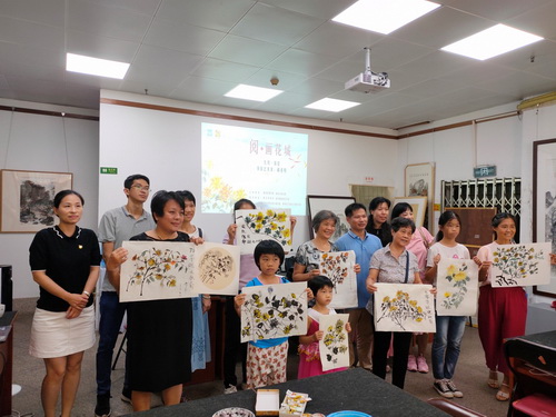 现,疏密布置、正侧翻转、长短变化等问题。在胡老师的细心耐心指导下,市民们画出了一幅幅表现松菊犹存、傲然挺立意境的美术作品!