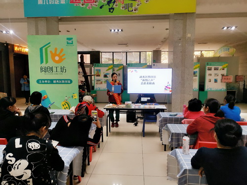 活动一开始, “越图之声”志愿者为读者们朗诵了一篇散文《玉兰花又开》,读者们仿佛被玉兰花的香气所吸引,静静地感受着隐藏在空气中的花香。