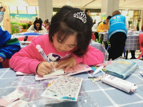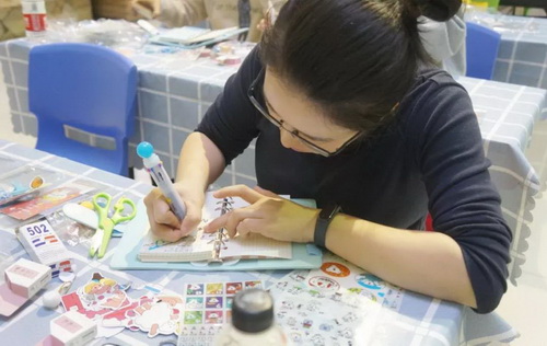 通过kelly老师的指导,读者们纷纷投入了自己的创作中,选取自己喜欢的本子,贴纸,饰品,一贴一画......