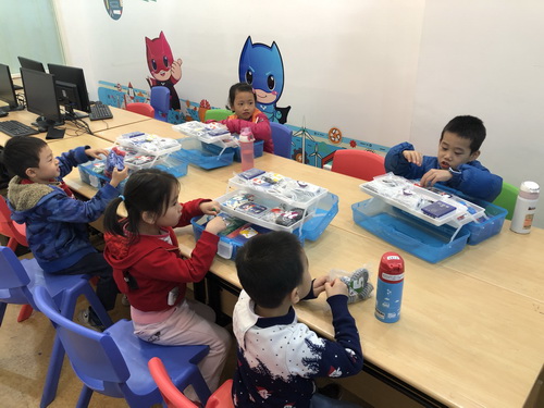 在老师的指导下,小读者们迅速地开始了AI机械的搭建,好玩有趣的海盗船创作正式开始!小读者们将相互协作,寻找到一个个对应的小部件,认真地进行组装。