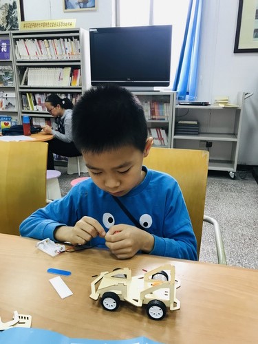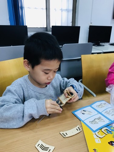 小创客们开始自信满满地拼装电动赛车,拼装过程中遇到的拦路虎都被小创客们一一打倒。