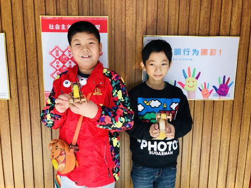 小创客们的迷你小赛车做好啦!快来邀请身边的小伙伴一起比赛吧。