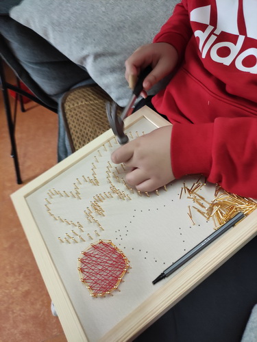 开始绕线!别小看这一幅小小的弦丝画,制作过程可不短哦。绕线是一个优美、治愈的活儿,时间仿佛慢了下来……