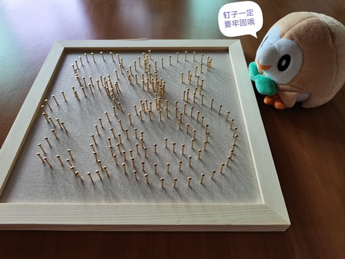 想要制作一幅漂亮的弦丝画,打好基础是关键......就是“砰砰砰”钉钉子啦!