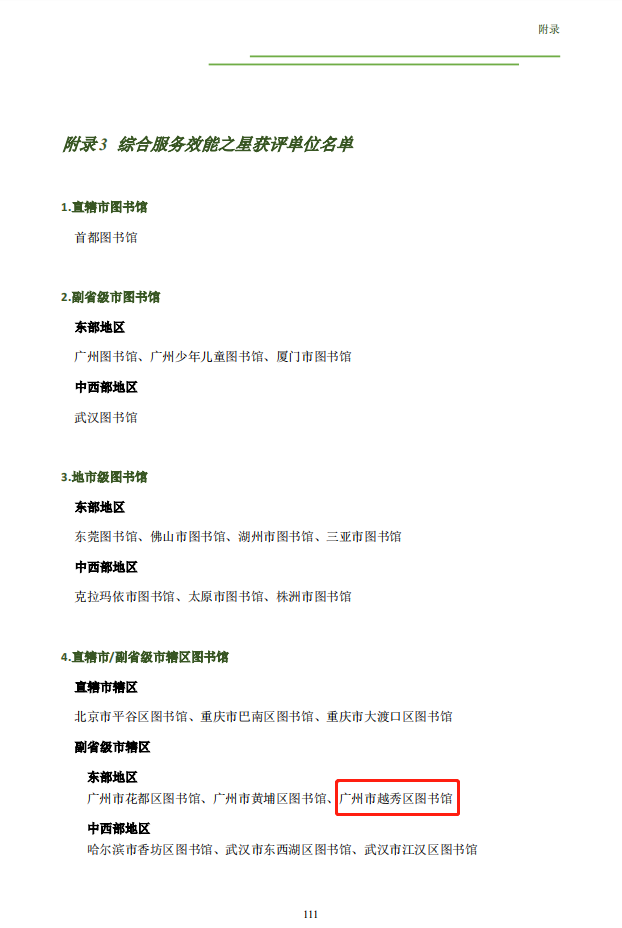 近日,《中国城市图书馆2019年度报告》出炉,越秀区图书馆获中国图书馆学会授予2019年度综合服务效能之星称号。