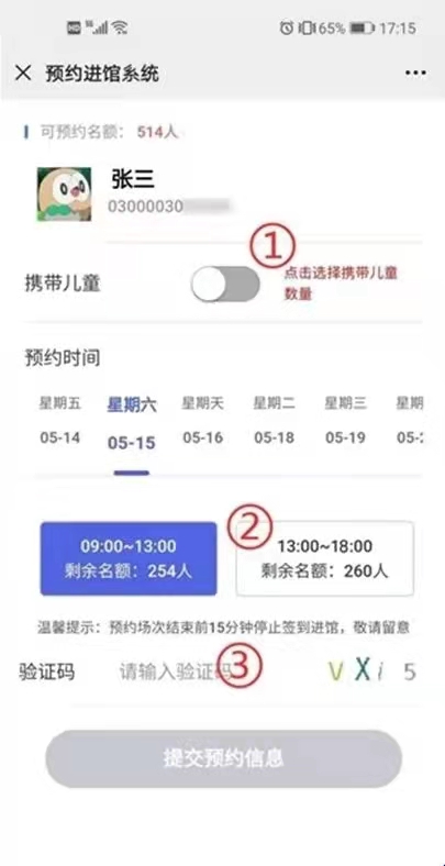 ④选择完成后,点击“提交预约信息”,若预约成功,会显示“预约成功”和相应的签到二维码。