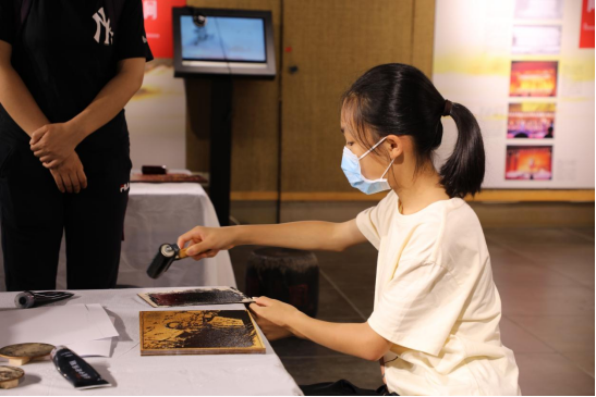 开幕式当天为读者提供木刻体验,让读者在拓印的过程中进一步接受红色文化洗礼,追忆峥嵘岁月,缅怀革命先烈,感悟革命精神,赓续红色血脉。