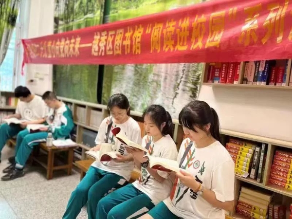小读者们正在越秀区图书馆与学校共建的