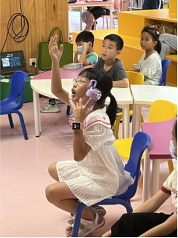 活动中,小读者们表现得非常踊跃,争先恐后地举手回答老师的提问,还不时会发出赞叹声和笑声。