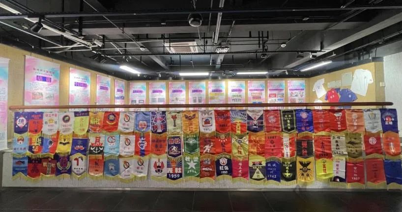 “快看这面社旗墙。我们学校还有独特的‘级社制度’,到了五、六年级,我们就能入社。不论毕业或建业,也不论在国内或海外,只要曾就读于培正,就是级社的终身成员,同学之间可以凭级社辨认长幼排序。”