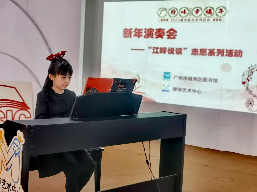 活动当天隆重推出“喜阅舞台·新年演奏会”,这是越秀区少年儿童图书馆第一场新年演奏会,同时也是一场志愿者音乐私伙局。演出者都是越秀区图书馆“喜阅志愿服务队”队员们,他们为广大市民献上了钢琴独奏《国旗》等22个精彩节目,奏响爱国主义强音,厚植家国情怀;演奏经典广东音乐,让现场洋溢着浓浓广府味。琴音为百年建筑永安堂增添了浓郁的浪漫气息,听众沉浸在音乐的魅力中,不时掌声雷动。