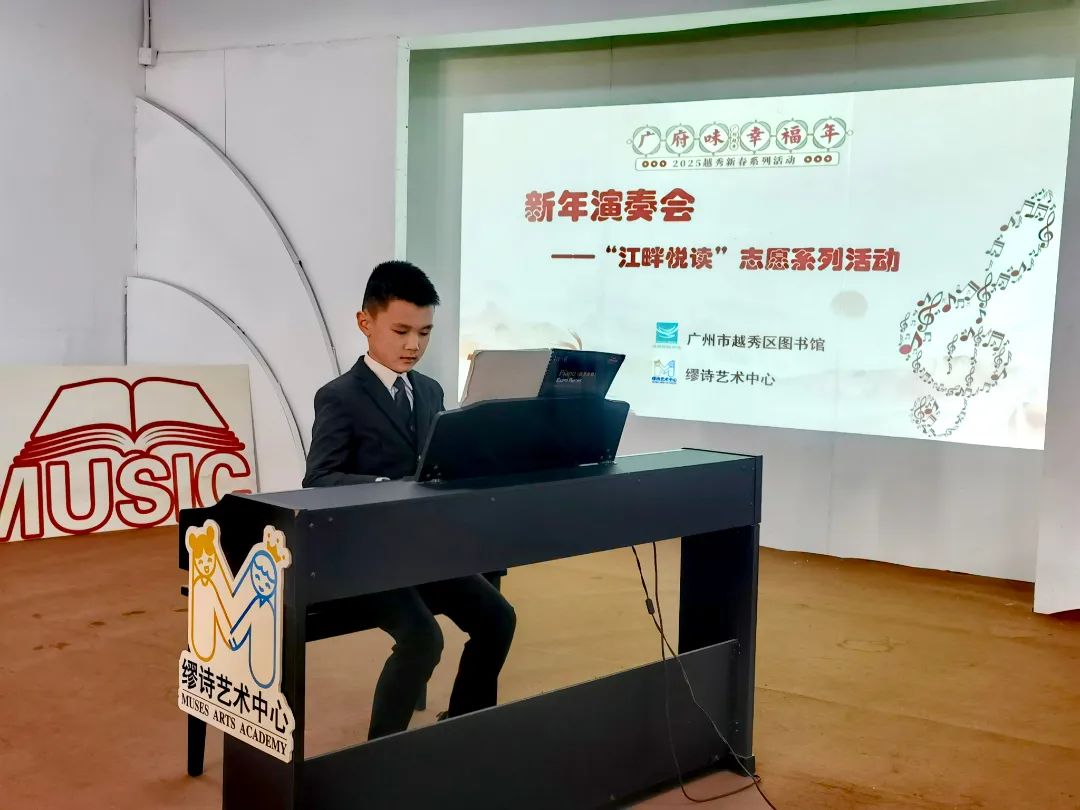 近日,广州市越秀区图书馆联合缪诗艺术中心、广东新华发行集团荟阅文化传播有限公司在越秀区少年儿童图书馆(永安堂)六楼举行“广府味·幸福年”2025越秀新春系列活动之“江畔悦读”——喜阅舞台·新年演奏会,邀请读者共同感受“书香里的广府年味”,用书香开启全新的一年。