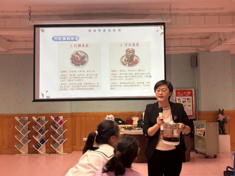刘宇老师介绍,生姜的营养价值很丰富,如富含姜辣素、维生素等,具有暖胃、抗菌、解表散寒、温中止呕、温肺止咳等功效,常用于风寒感冒、脾胃寒症、胃寒呕吐等情况的辅助治疗。生姜还有药食同源的妙用,比如隔姜灸能祛风散寒、缓解疼痛、增强身体抵抗力,小读者与家长现场体验了一把隔姜灸。