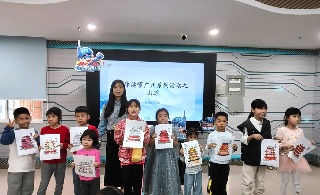 越秀作为广州的城市核心,恰是五脉的活态图书馆,本次活动以“山脉”为主题,将诗文、体育、古迹、民俗等本土文化元素与“清风侠”护苗理念结合,通过知识科普+知识问答+绘画体验的形式,让读者在趣味互动中读懂越秀的山脉历史、爱上优秀传统文化。