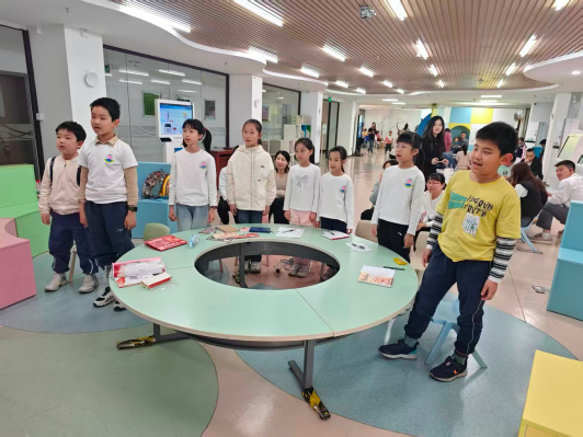 活动的下半段进入了互动环节。孩子们纷纷上台,分享他们摘抄的、来自图书《孩子心中那一抹红》的红色诗篇,并畅谈自己的感受。家长们也积极参与,现场气氛热烈而感人。