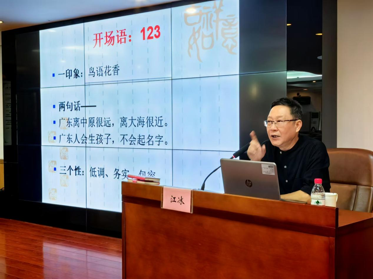 在江冰看来,了解广州,需要把广州放在岭南文化的背景下来看,从三点切入,“一是鸟语花香。鸟语是指广东人说话跟唱歌一样,同时也说明广东是移民大省,历代移民流动非常大。花香说的是季节,四季如春,遍地花香,五岭挡住了寒流,使得广东气候温润。二是广东离中原很远,离大海很近,海洋性是岭南文化的一大特点。三是岭南文化的个性,低调、务实、包容,广东人的性格有两面性,看上去不声不响,但有雄直之气,如三元里抗英。”