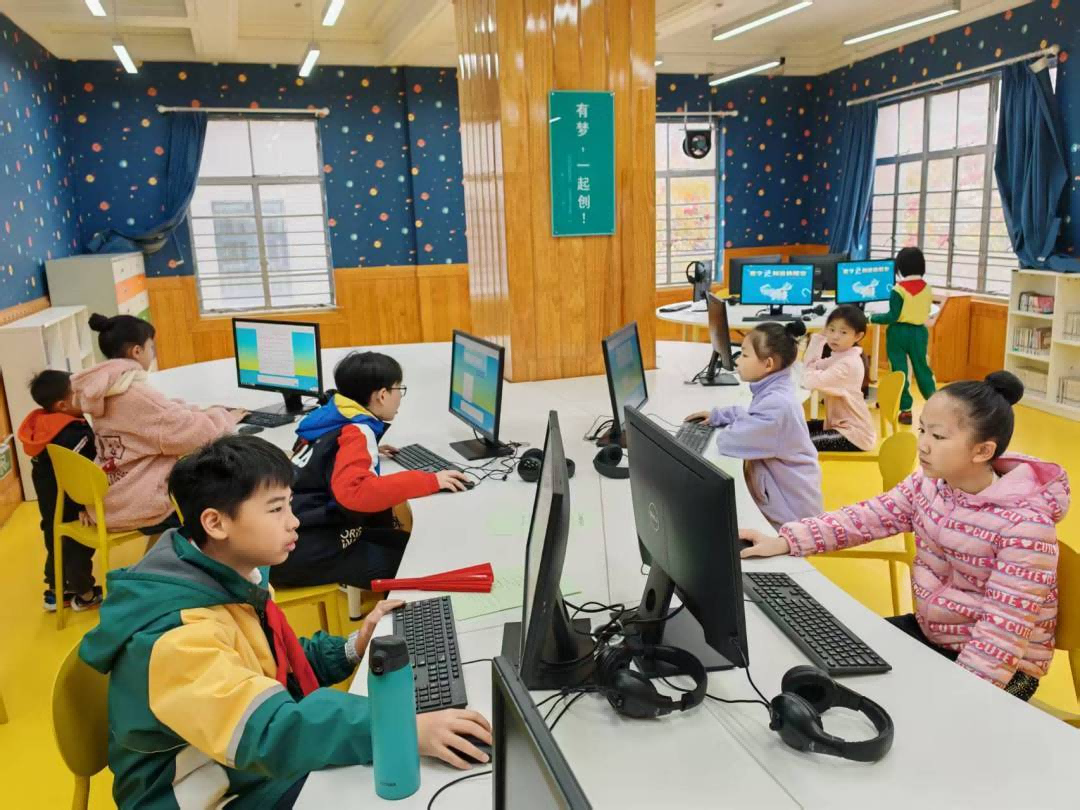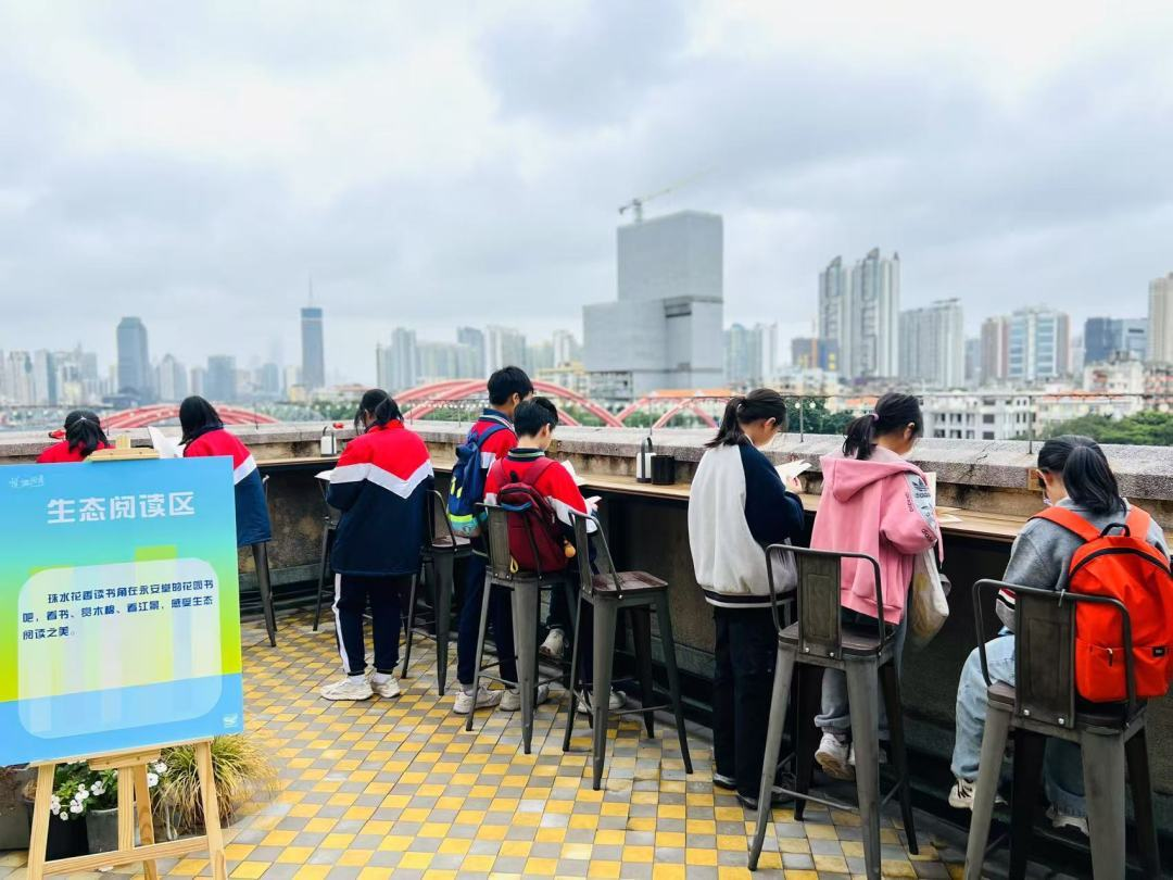 当小读者们从“小越”这里收获满满的阅读资源后,他们又迫不及待投入到阅读探索之旅中:在“珠水花香读书角”读经典赏美景,创作融合全运会吉祥物“羊乐乐”与广府骑楼元素的木刻拓印画,还有文明观赛知识抢答、趣味运动闯关……“阅读+生态”“阅读+木刻”“阅读+体育”等多元组合,生动诠释了“阅读+”模式的包容与创新,也展现了越秀学子热爱阅读、热爱创造、热爱运动的精神风貌。
