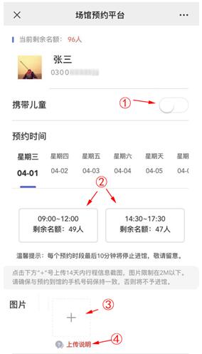 (4)在图书馆预约平台携带儿童项,选了人数“1”,预约成功读者可带1名14岁以下小孩入馆。