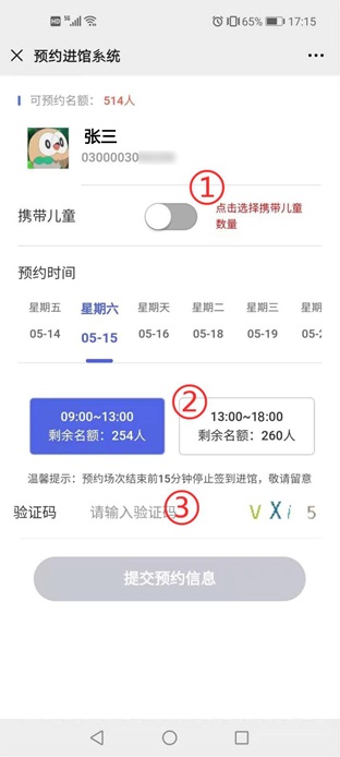 ①选择是否携带儿童进馆