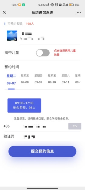 ①选择是否携带儿童进馆