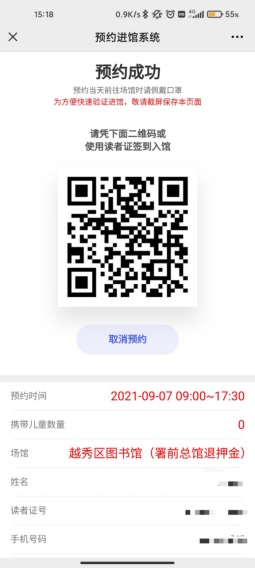 8、到馆前,请读者准备好预约码以及穗康码(或粤康码)。
