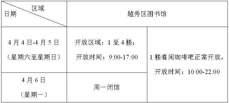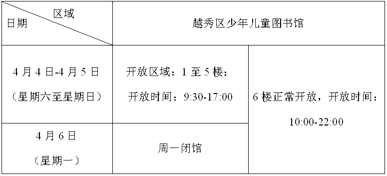 2026年清明节假期期间,越秀区图书馆和越秀区少年儿童图书馆开放服务有关事项安排如下: