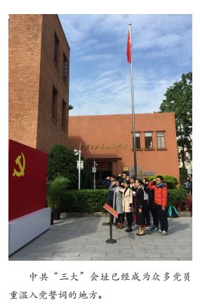 现在的中共三大会址作为全国爱国主义教育示范基地吸引无数游客前来参观学习。虽然中共三大会址已非昔日的模样,但那一幅幅书画,那一件件武器,那一尊尊塑像,那一样样家具,犹可追寻革命前辈的足迹。透过那镌刻着“中国共产党第三次全国代表大会会址”和“全中国国民革命者联合起来”的字样,我们仍可以从中寻觅闪烁在历史烟云中的昔日光影。