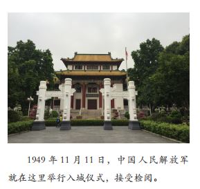 在人民公园,往北走到尽头,便是位于府前路的广州市人民政府大院。而广州市人民政府大门前的月台,就是1949年11月11日中国人民解放军进城检阅台的旧址,当年四野的第十五兵团就是从这里接受检阅入城的。